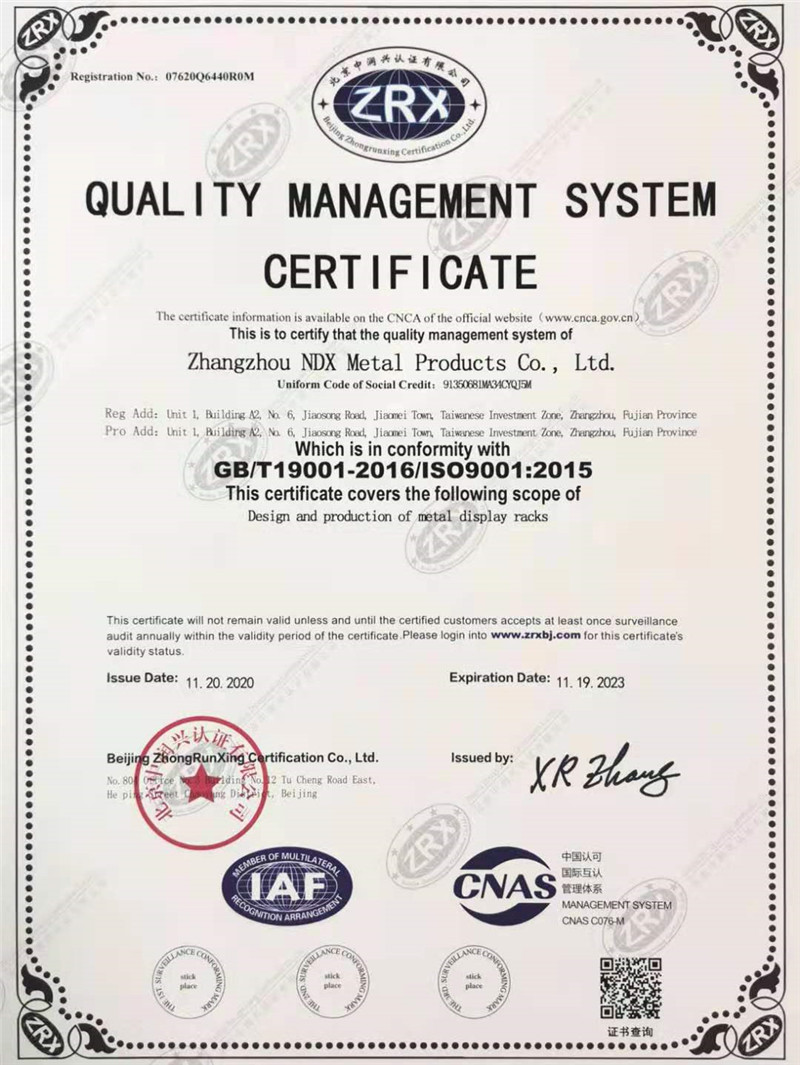 Zhangzhou NDX Technology Co., Ltd, located in Zhangzhou, Fujian, It is a mature and experienced display fixtures manufacturer inheritance and development from Xiamen DSN Metal Industrial, Co.,Ltd that established in Xiamen in 2006, professionally for all kinds of display fixtures manufacturing, especially on POP and Custom-made products.