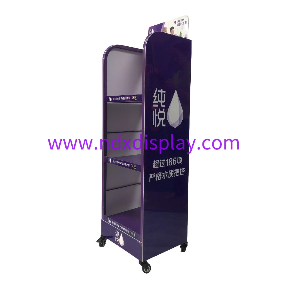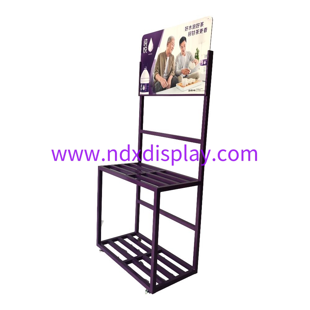 Usage: display variety of beverage bottles on supermarket or retail stores