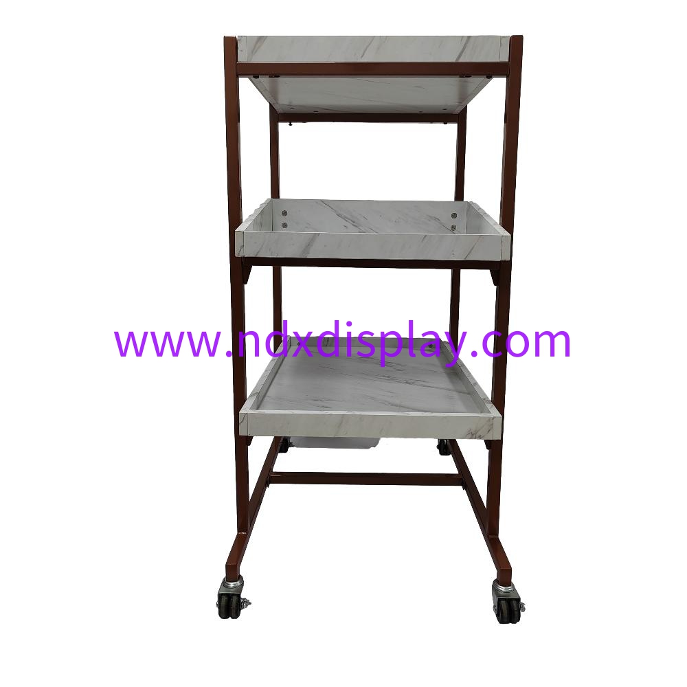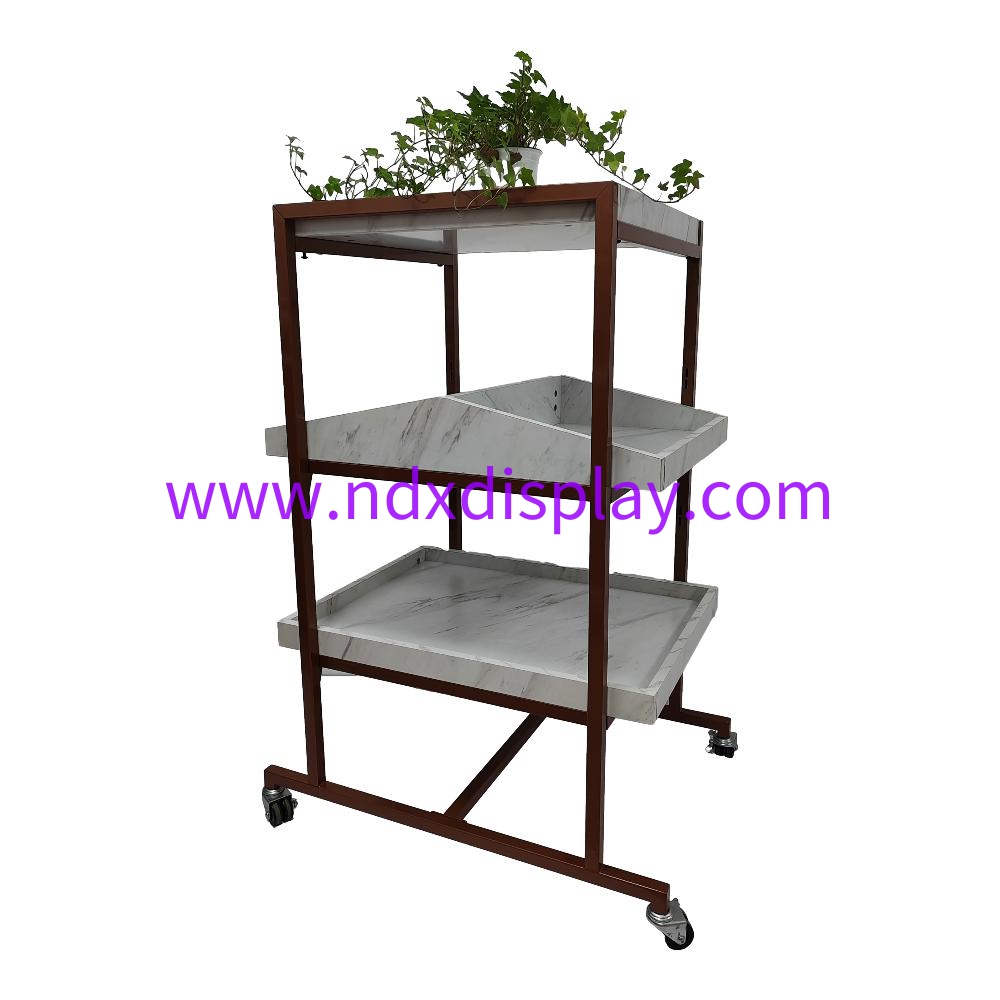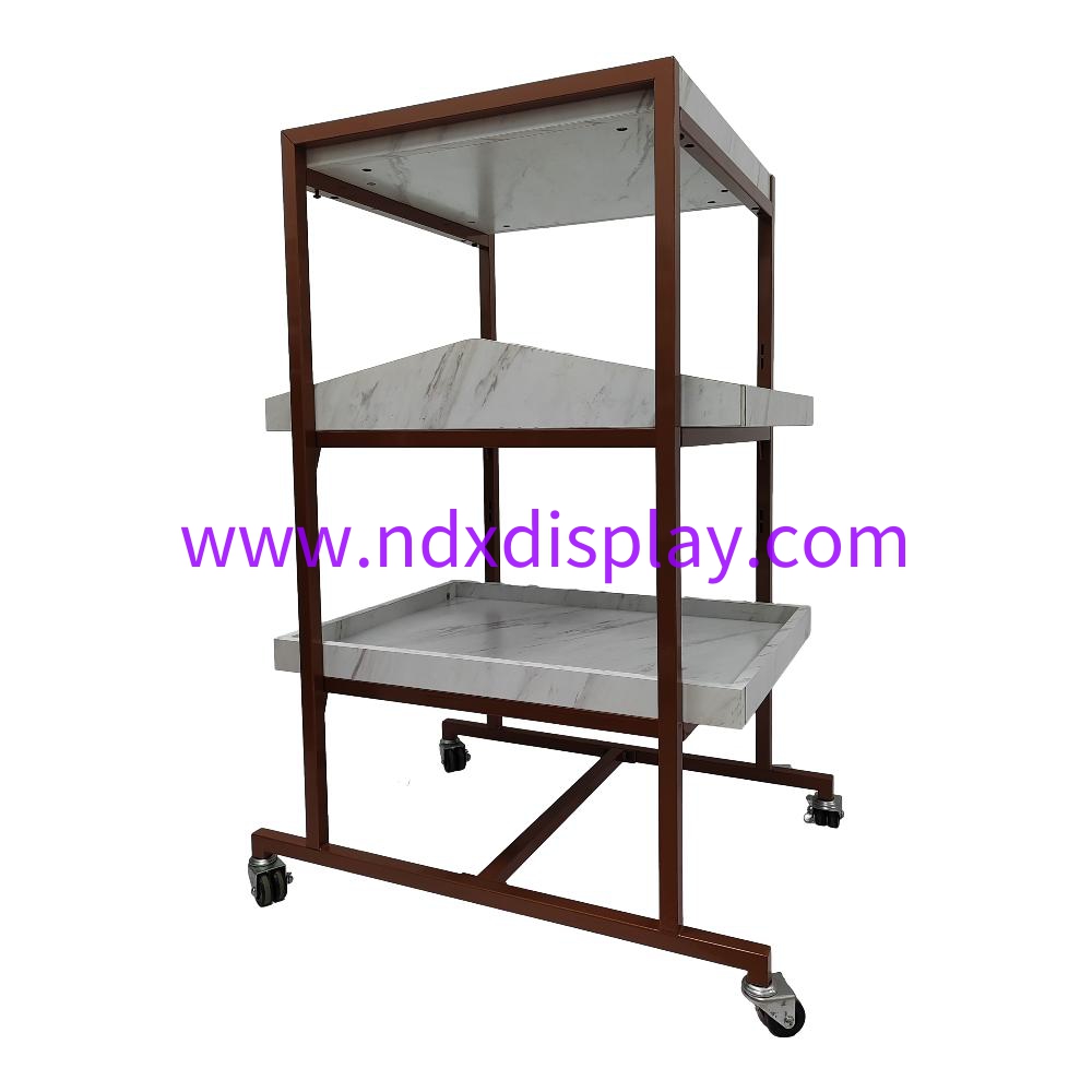 44.5"H Large Multi Functional Rose Golden Display Rack with Wood Panels in Marble